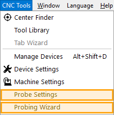Open the Probing Wizard by selecting CNC Tools → Probing Wizard, or by clicking the Probing button in the Move Window.