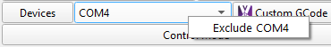Right-clicking the Devices button closes and re-opens the connection to the currently selected device.