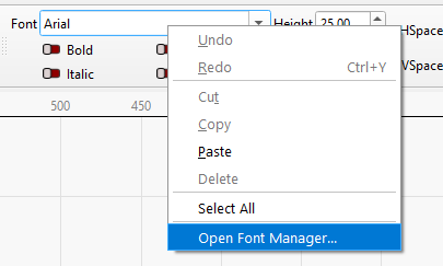For additional options, while the font list is active, right-click the font list and select Open Font Manager....