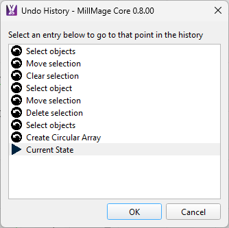 MillMage's new Undo History feature makes it easier to navigate a long undo list.